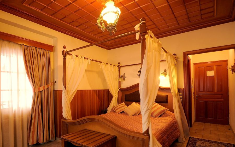 Stone, wood, & warm colours come together to celebrate local heritage while embracing contemporary comforts. Every detail reflects the region’s traditions, from the impressive stone arch and welcoming fireplace to the wooden ceilings, handcrafted beds & Turkish bath.
