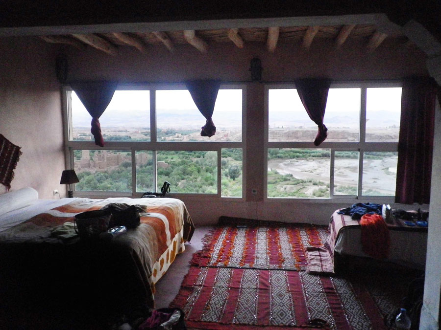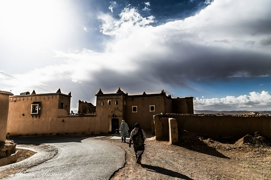 The Kasbah Itran overlooks the Dades Valley near Kelaa M'Gouna. Located between the Atlas and the Sahara, Kasbah Itran is like a balcony overlooking the life of Berber people in the Dades Valley. Kasbah Itran was built using traditional materials - earth, water and straw to form adobe blocks. These blocks are used to make the thick walls; the roofs are made of bamboo stems intertwined with cedar logs.