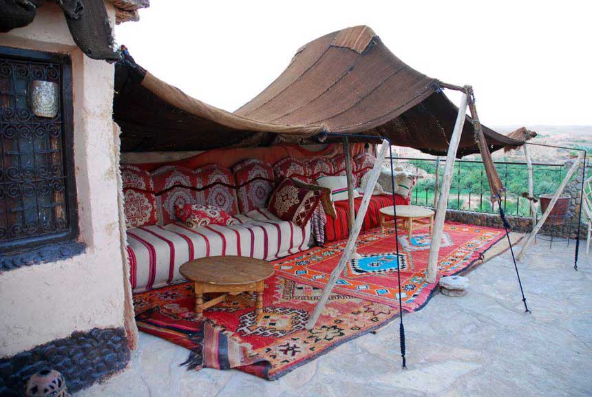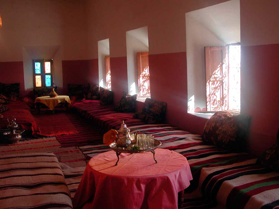 A traditional Berber stove, a clay oven, can be found in the kitchen which gives the perfect finish to the most delicious Berber dishes. Meals are served in cosy rooms and, if the weather is pleasant, you can dine on any one of the terraces overlooking the fertile valley of the M'Goun river.