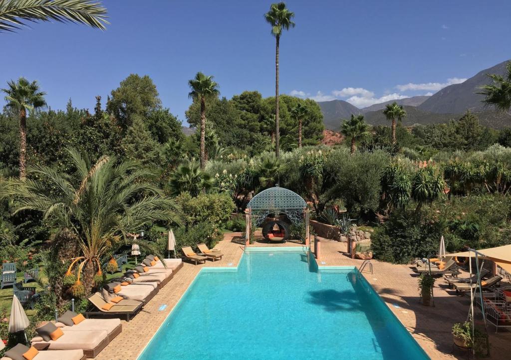 La Roseraie is located in the centre of the Berber village of Ouirgane and boasts typical Moroccan architecture in its low-rise design; the hotel’s accommodation and facilities are spread out within a lush garden arranged around a series of fountains. In fact the whole complex stretches for 60 acres of parkland, flower beds, olive trees, orchards and over 5,000 roses. Within this hotel there is a large spa and plenty of space and tranquillity to relax just one hour from the hectic city of Marrakech.
