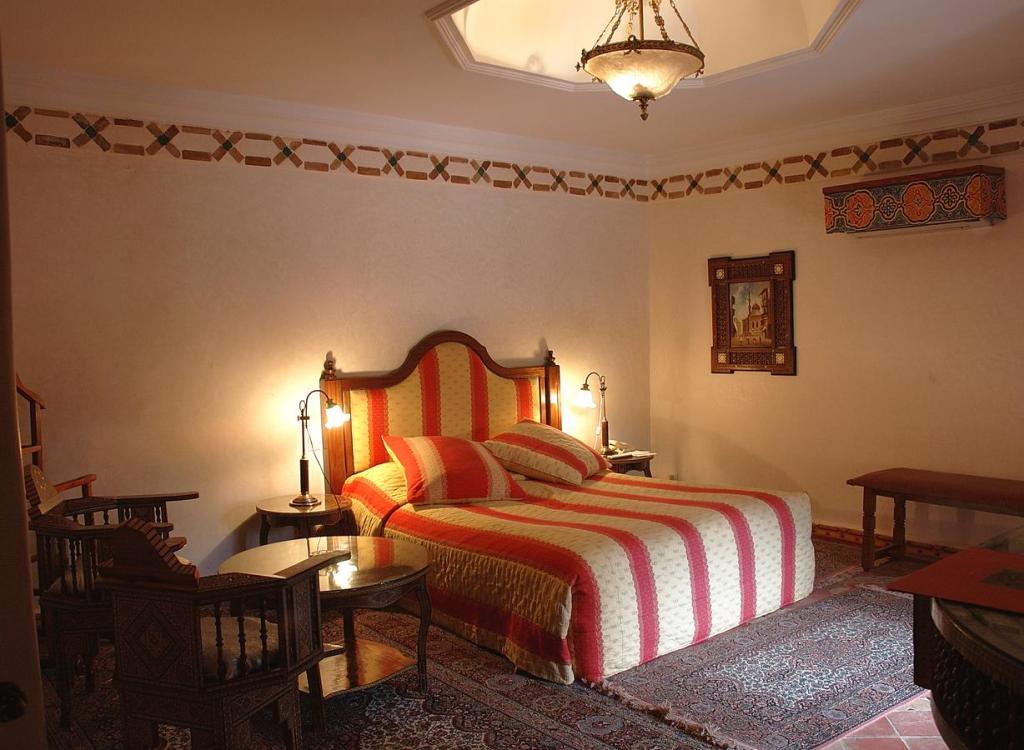 An outdoor swimming pool, wifi, free parking and a restaurant serving Moroccan and French dishes are served in the dining area for evening meals and light lunches.