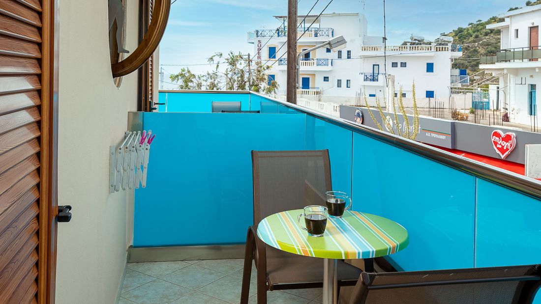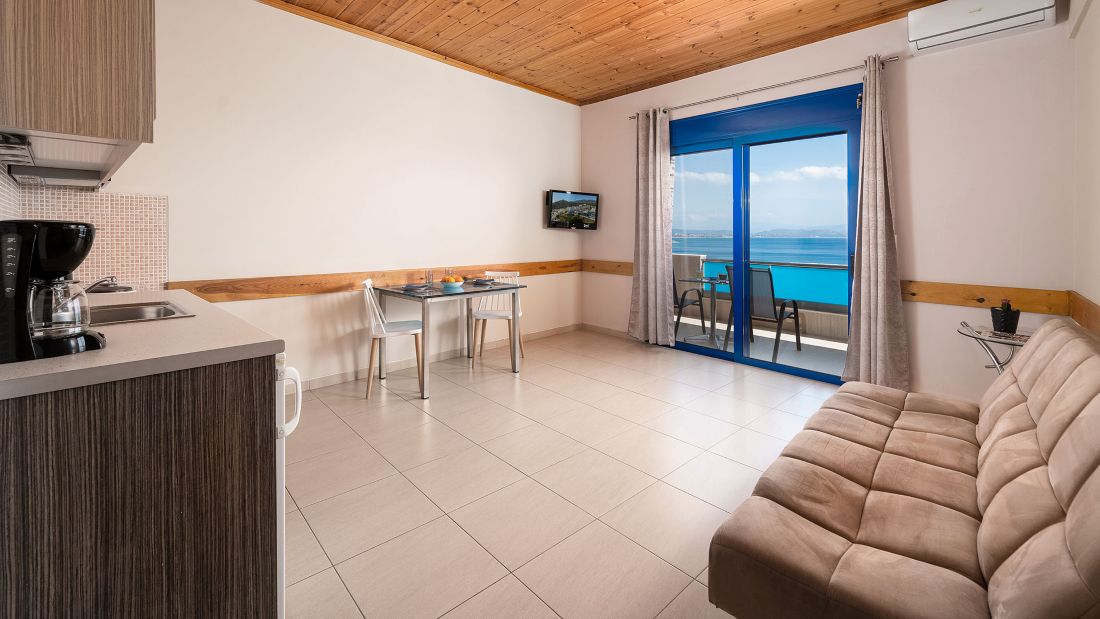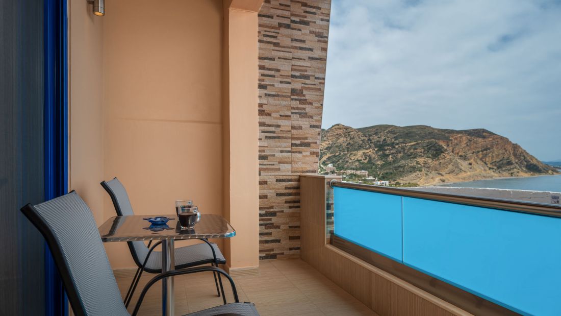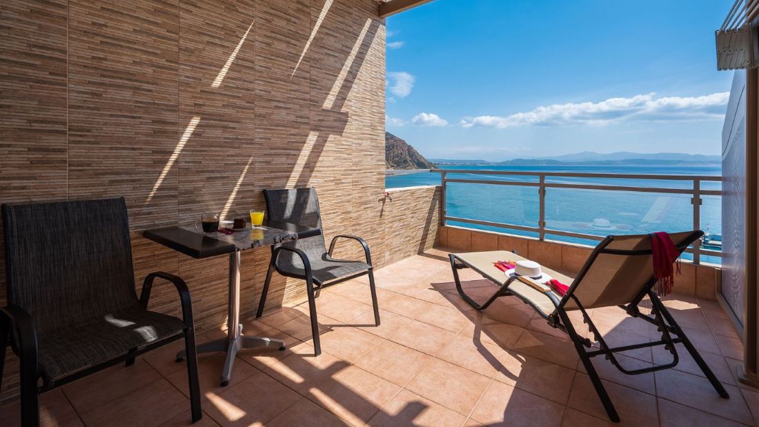 • Junior Suite with Side Sea View - this room also has two sofa beds, a kitchen, & two balconies.