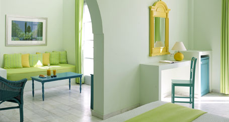 They provide every modern comfort and convenience, including satellite flat screen television, air conditioning, safety deposit box, fully stocked mini bar, direct dial phone and free internet access. Also, upon request, DVD player and fluffy bathrobes with slippers. All suites and rooms open out to a balcony or veranda overlooking either the pools or the gardens.